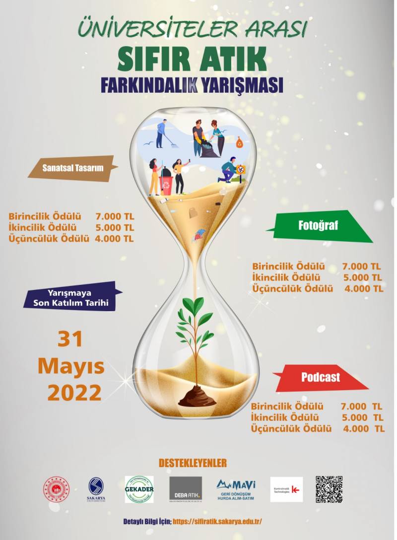 Üniversite öğrencilerinin, akademik ve idari personelinin dikkatini sıfır atık konusuna çekmek ve kamuoyunun tüm kesimlerini bilgilendirmek amacıyla Sakarya Üniversitesi’nin öncülüğünde Uluslararası Kısa Film Festivali’nde Sıfır Atık Temalı Kısa Film özel ödül yarışması ile Üniversitelerarası Podcast, Fotoğraf ve Sanatsal Tasarım yarışmaları düzenlenecektir.